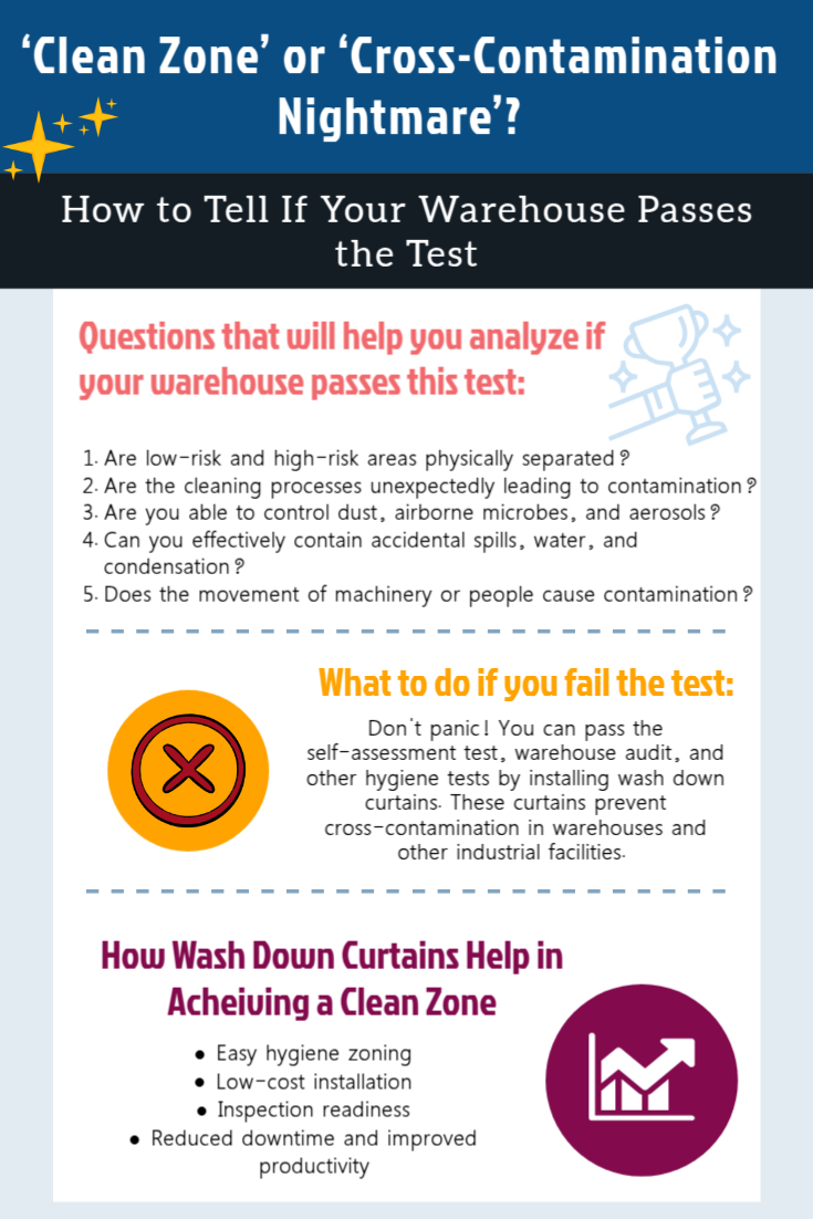 In this post, we’ll explain how to tell if your warehouse passes the self-assessment test, the role of food grade wash down curtains in eliminating any risks of cross-contamination, and how to ensure that your warehouse remains a clean zone.